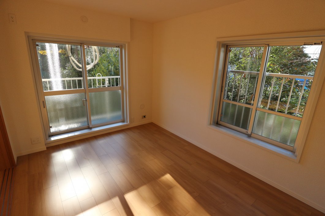 南西角部屋の開放感と緑の見える眺望を現地でご確認ください。