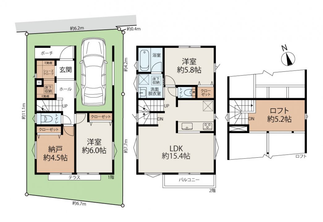 | 土地面積 | 79.77㎡ (公簿) | セットバック面積 | 1.11㎡含 |