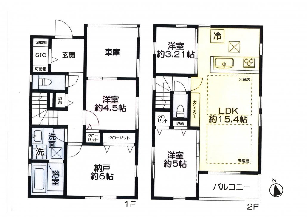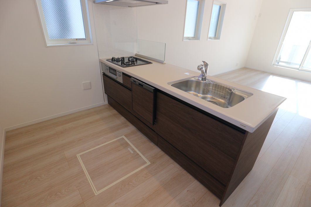 ■床暖房のあるLDK、豊富な収納を取り入れたプランに、南面が開いているので陽当りも良好です。