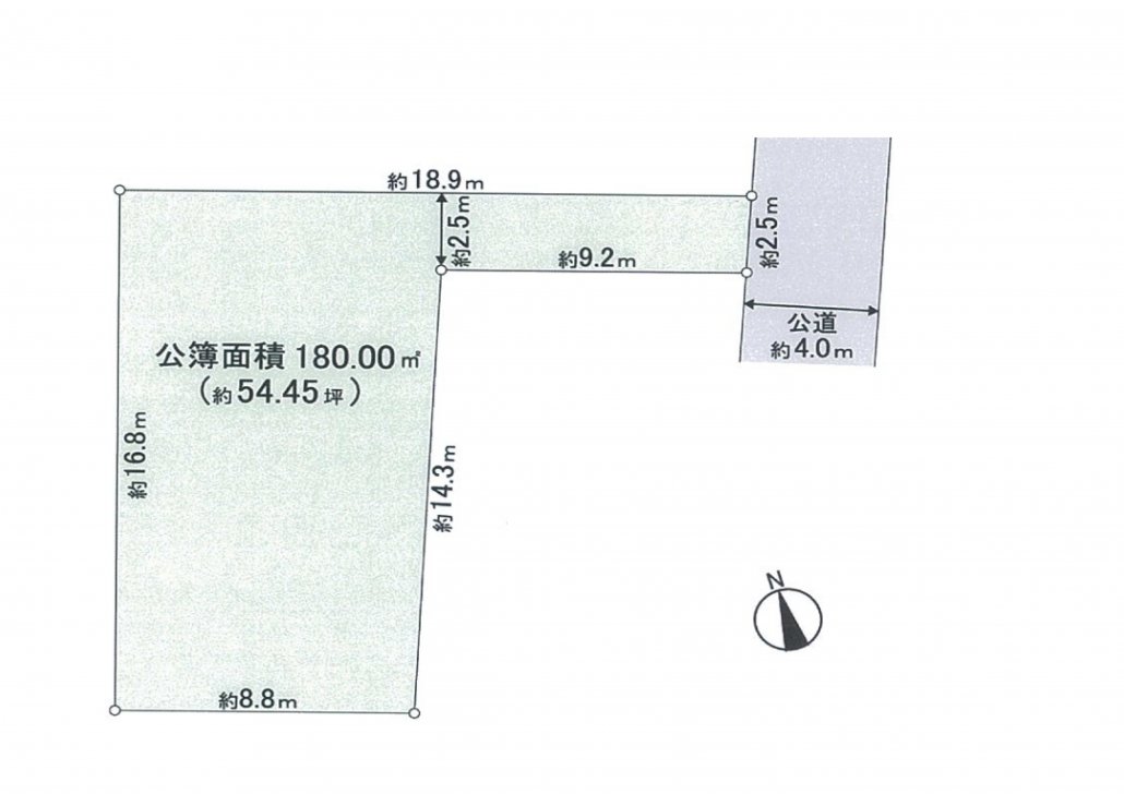 | 土地面積 | 180.00㎡ | 接道状況 | 東 4.00M道路に2.50M接道 |