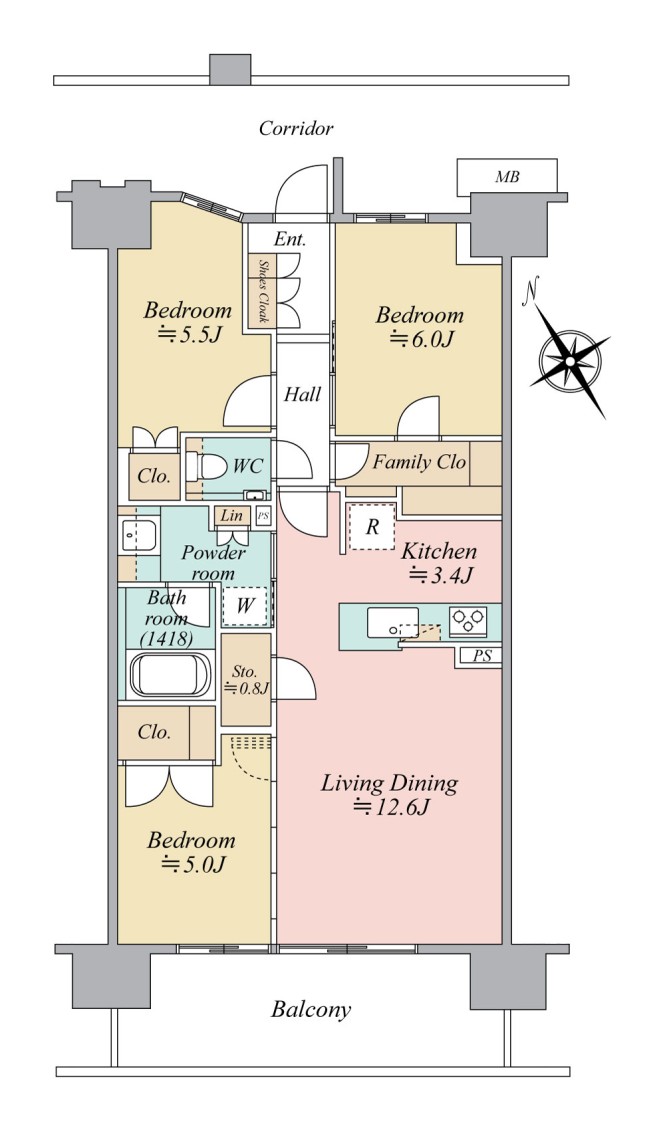 | バルコニー面積 | 12.60㎡ | 間取 | 3SLDK |