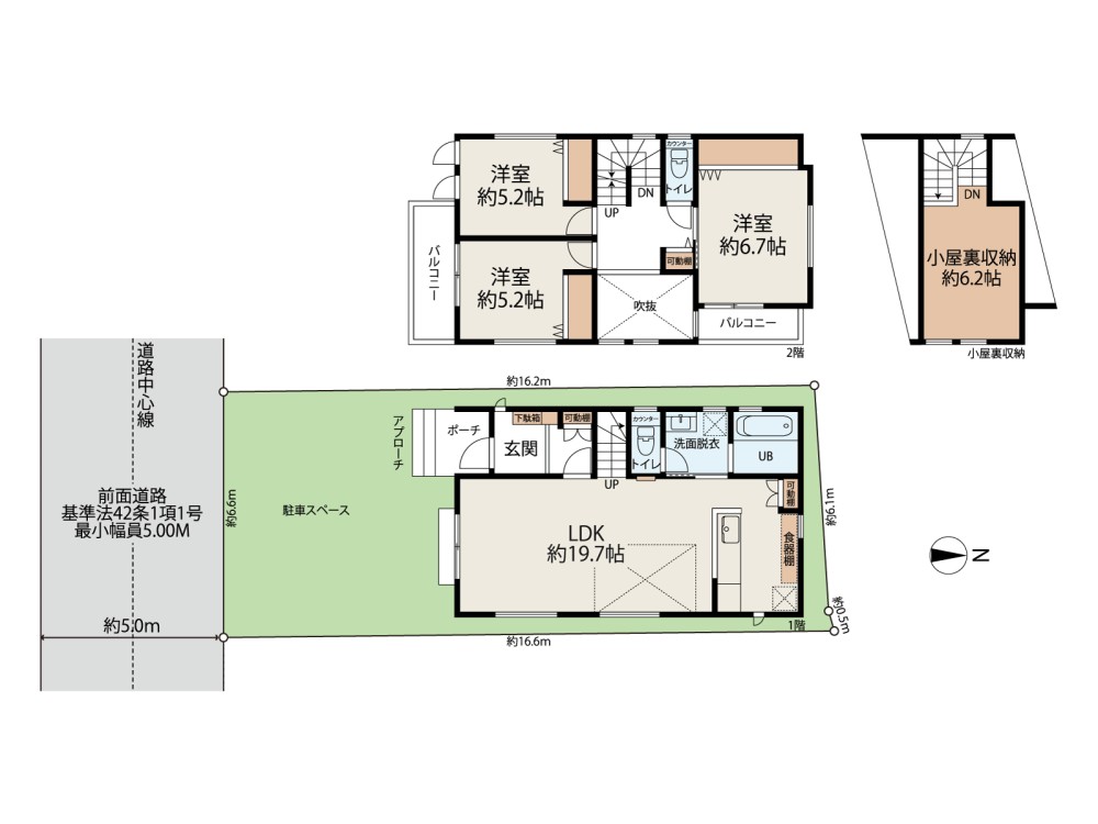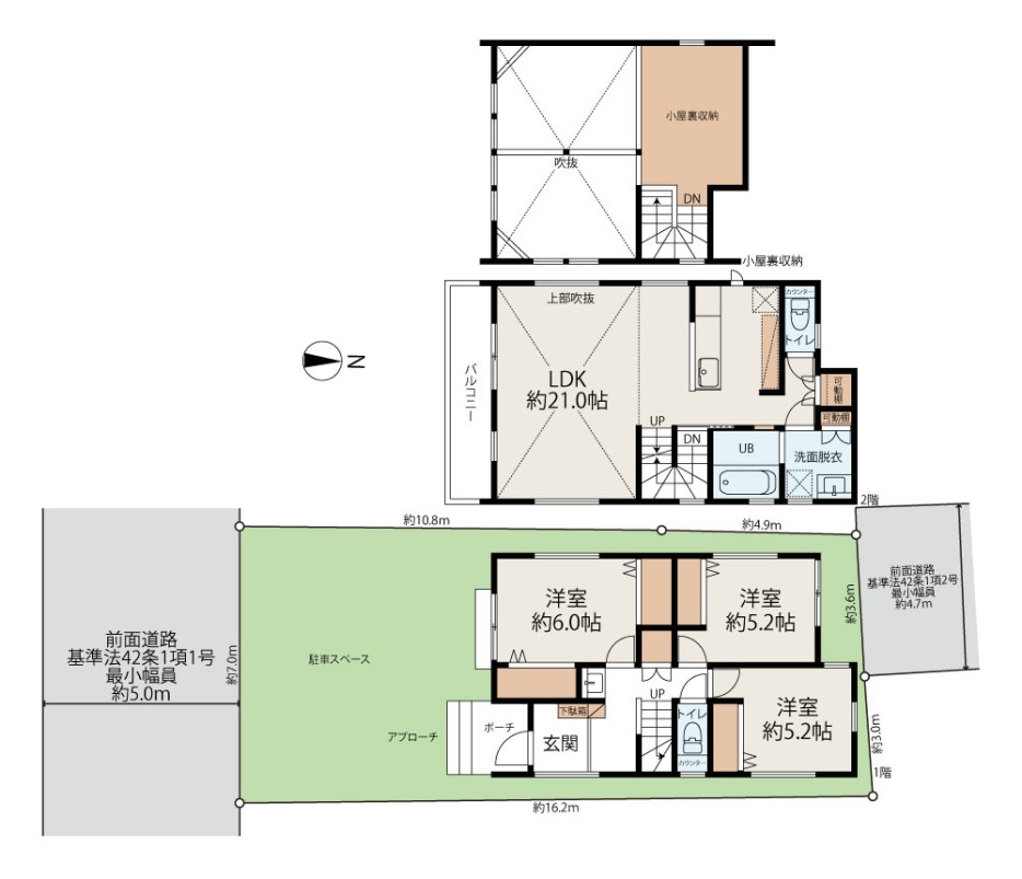 ◆南道路幅員は5m、駐車も安心の広さと開放的な立地です。