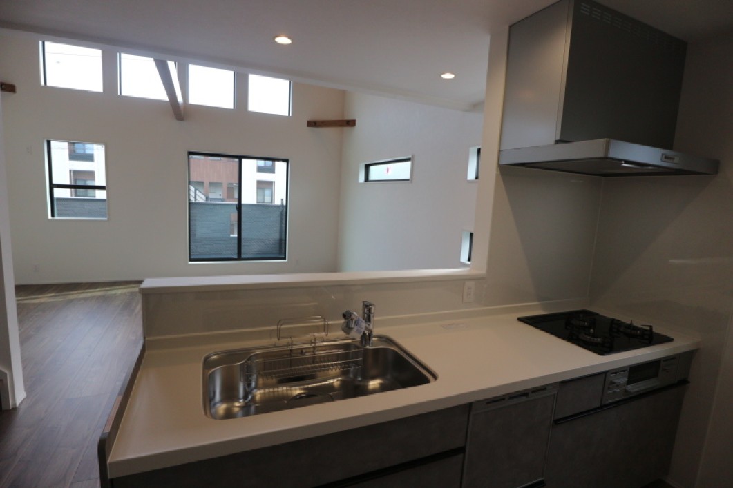 ◆B号棟は1階19帖超の広いリビングは吹抜け付で、開放的です。