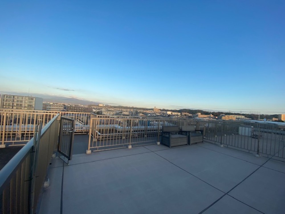 屋上専用ルーフテラスは、30.74㎡(18畳超)広く、眺望、開放感抜群です!! ◆8m超の広いワイドバルコニーは、陽当り、開放感良好です。 ◆上階は専用ルーフテラスの為、上層住戸はありません。 ◆水回りスペースを周回できるように配置した、生活動線の良いプランです。 ◆ウォークインクローゼット、洗面室収納などの収納豊富さも魅力です。 ◆コンビニ、スーパーも徒歩5分圏内にある利便性も魅力です。
